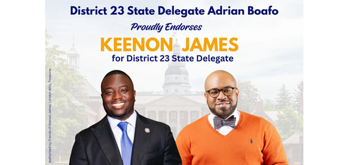District 23 State Delegate Adrian Boafo joined the growing list of elected officials who are supporting Keenon James.